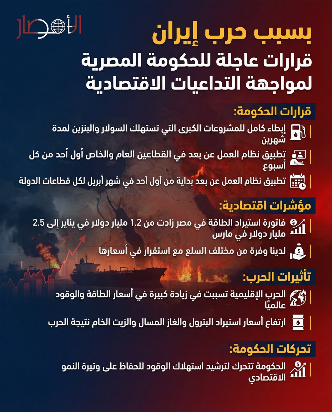 انفوجراف| بسبب حرب إيران.. قرارات عاجلة للحكومة المصرية لمواجهة التداعيات الاقتصادية