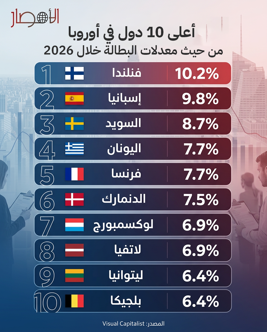 انفوجراف.. أعلى 10 دول في أوروبا من حيث معدلات البطالة خلال 2026