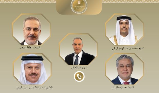في ضوء توجيهات رئيس الجمهورية المصري بمتابعة ومواصلة جهود خفض التصعيد بالمنطقة، جرت اتصالات هاتفية بين الدكتور بدر عبد العاطي وزير الخارجية والتعاون الدولي والمصريين بالخارج، وهاكان فيدان وزير خارجية تركيا، ومحمد إسحاق دار نائب رئيس الوزراء وزير خارجية باكستان، ومحمد بن عبد الرحمن آل ثاني رئيس مجلس الوزراء وزير الخارجية بدولة قطر، والدكتور عبد اللطيف بن راشد الزياني وزير خارجية مملكة البحرين، وذلك لبحث التطورات الإقليمية المتسارعة وتنسيق الجهود المشتركة لخفض التصعيد.