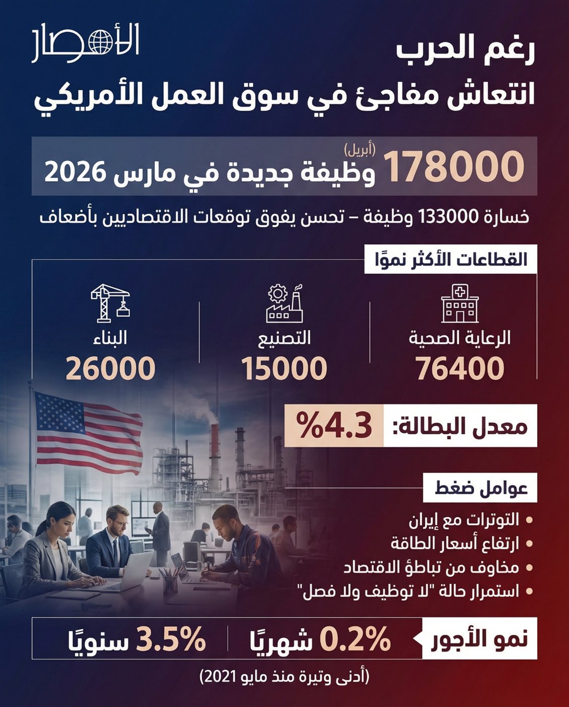 إنفوجراف| رغم الحرب.. انتعاش مفاجئ في سوق العمل الأمريكي