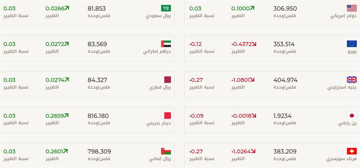 وفيما يلي جدول يعرض أسعار تداول عملات عربية وأجنبية أمام الدينار، وفق النشرة اليومية لبنك الكويت المركزي: