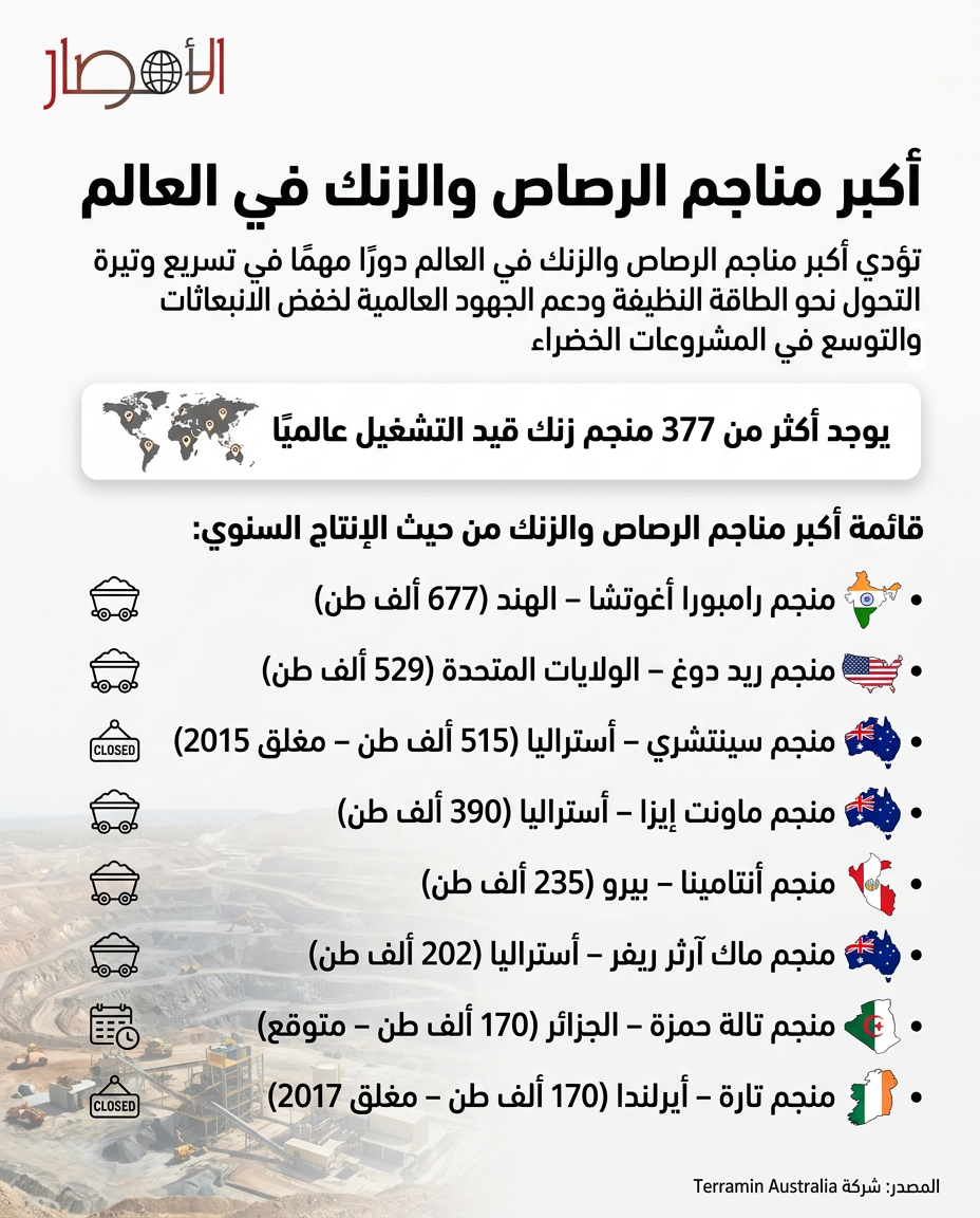 إنفوجراف| أكبر مناجم الرصاص والزنك في العالم