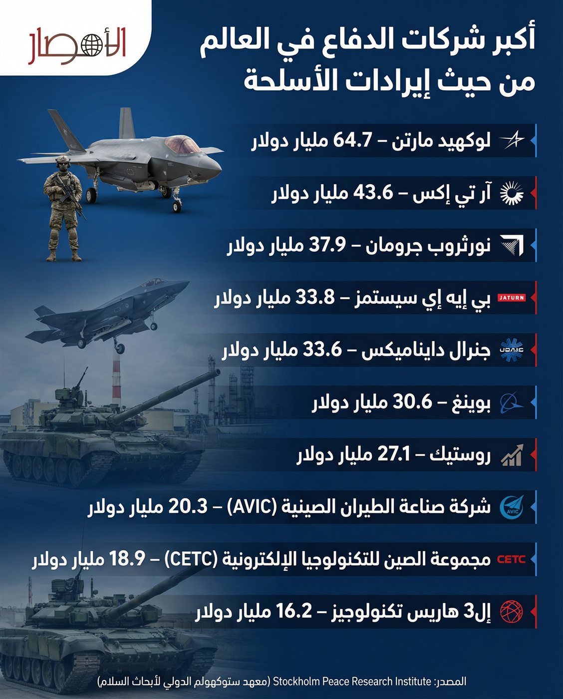 إنفوجراف| أكبر شركات الدفاع في العالم من حيث إيرادات الأسلحة