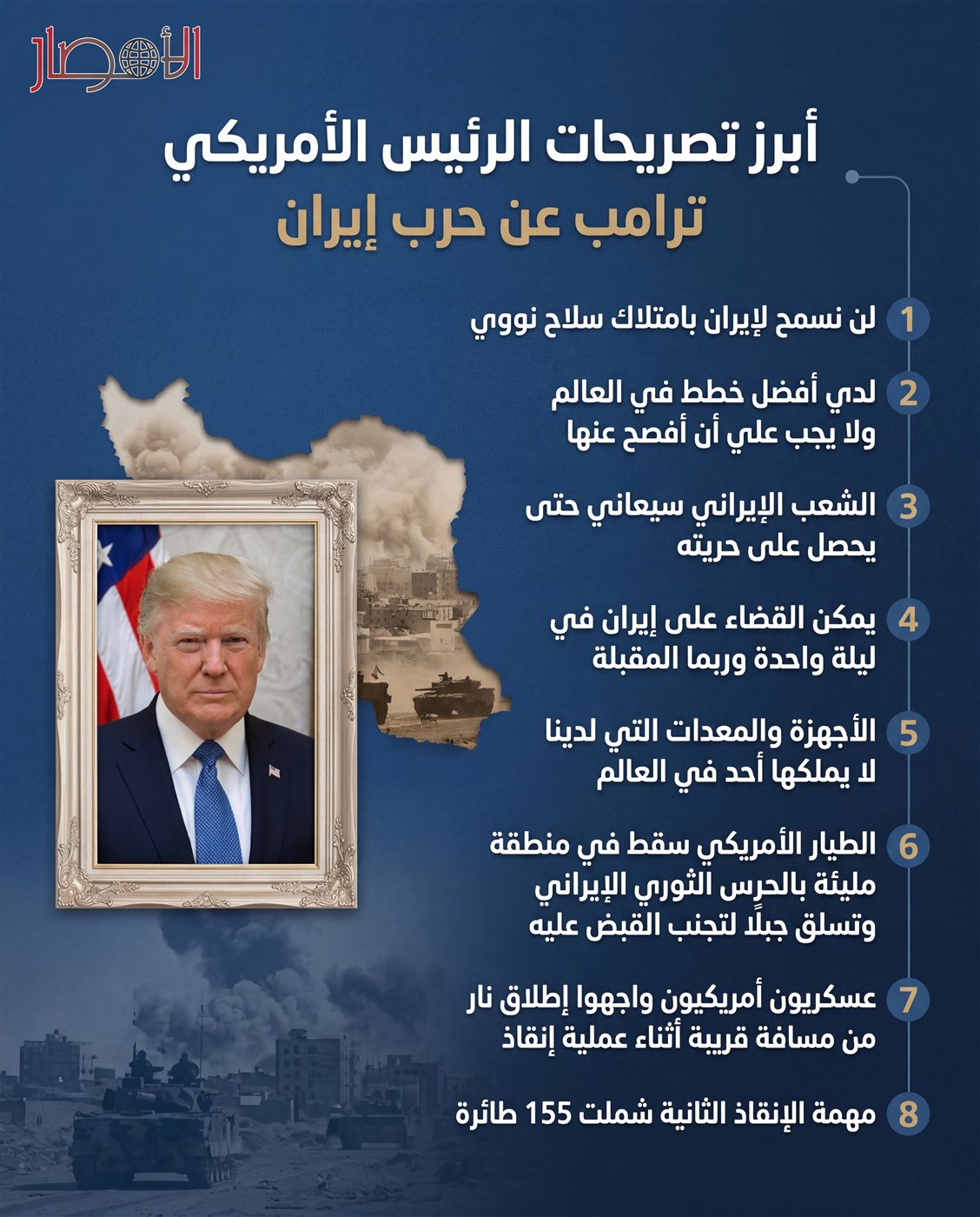 بالإنفوجراف| أبرز تصريحات الرئيس الأمريكي ترامب عن حرب إيران