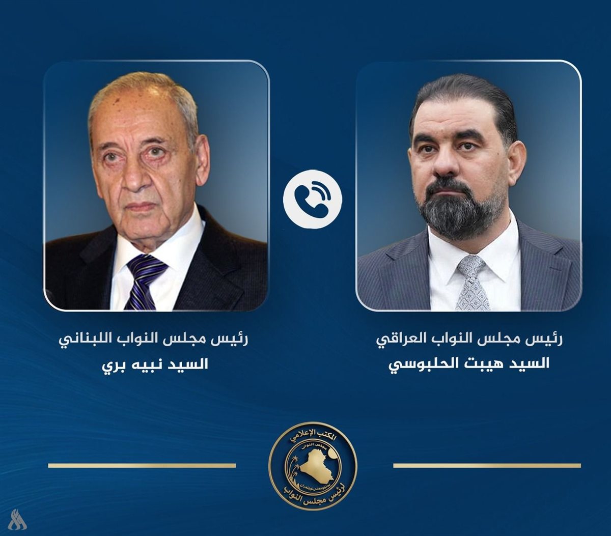وذكر المكتب الإعلامي لرئيس مجلس النواب في بيان، أن "رئيس مجلس النواب هيبت الحلبوسي، أجرى اتصالاً هاتفياً برئيس مجلس النواب اللبناني نبيه بري".
