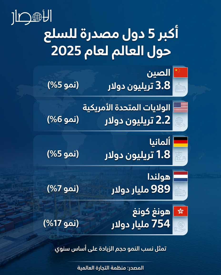 انفوجراف/ أكبر 5 دول مصدرة للسلع حول العالم لعام 2025