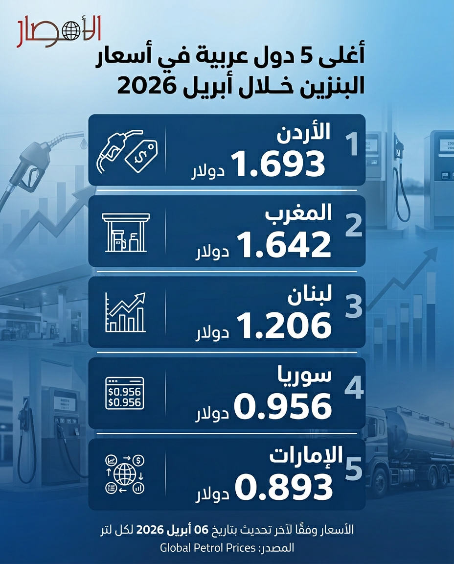 انفوجراف.. أغلى 5 دول عربية في أسعار البنزين خلال أبريل 2026