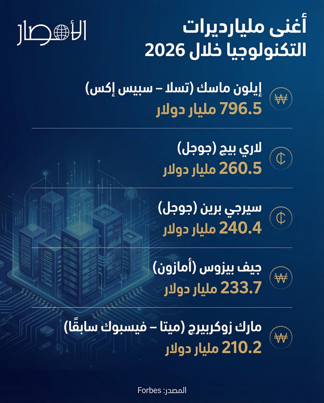 إنفوجراف.. أغنى مليارديرات التكنولوجيا خلال 2026