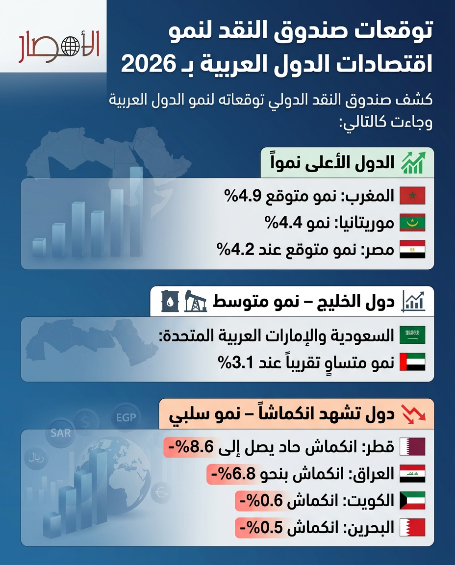 بالإنفوجراف| بالأرقام.. توقعات صندوق النقد لنمو اقتصادات الدول العربية بـ2026