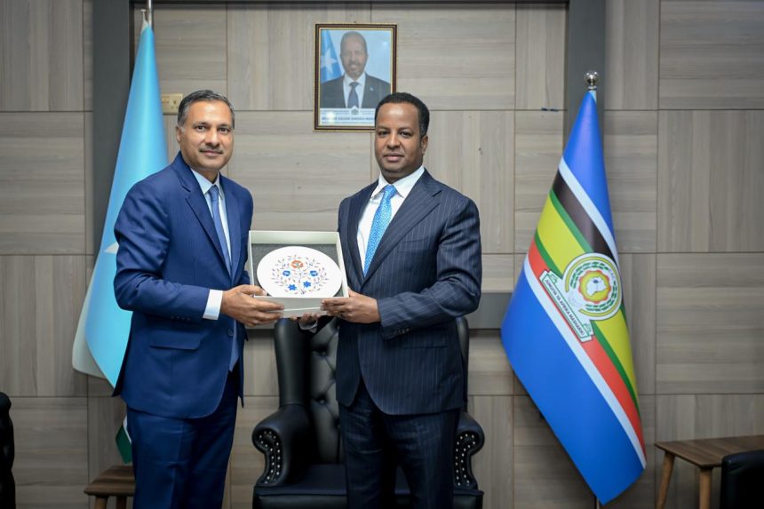 بحث الصومال والهند، سبل تعزيز التعاون الاستراتيجي والعلاقات الثنائية بين البلدين، خلال لقاء جمع وزير الخارجية الصومالي والسفير الهندي لدى مقديشو.