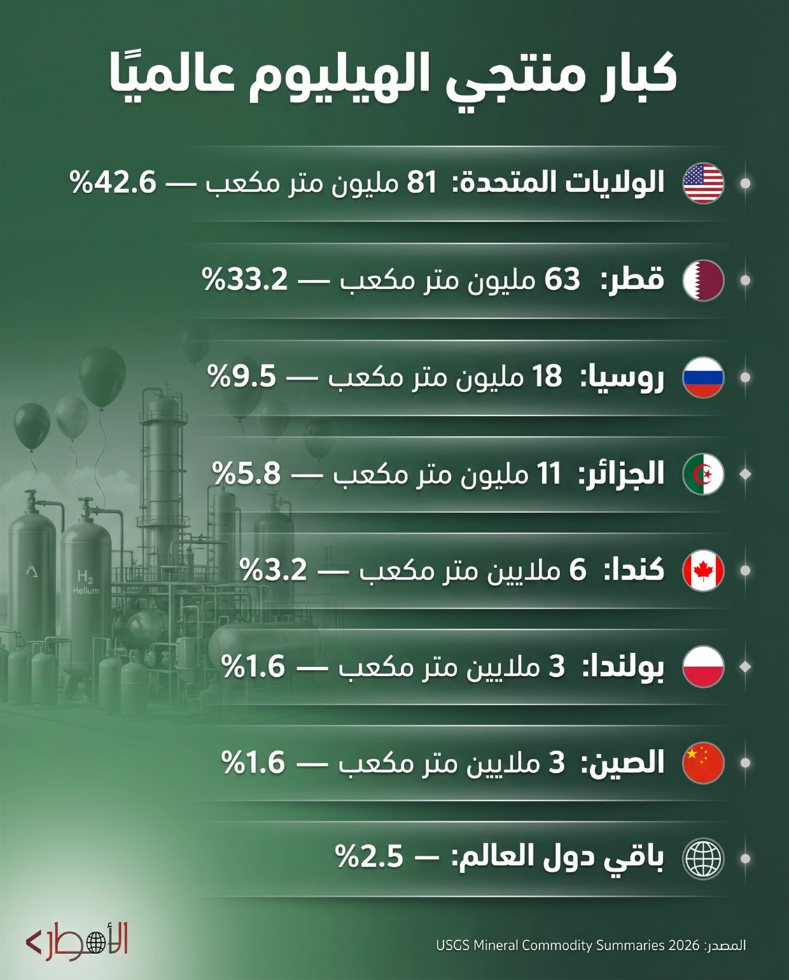 إنفوجراف| بالأرقام.. كبار منتجي الهيليوم عالميًا