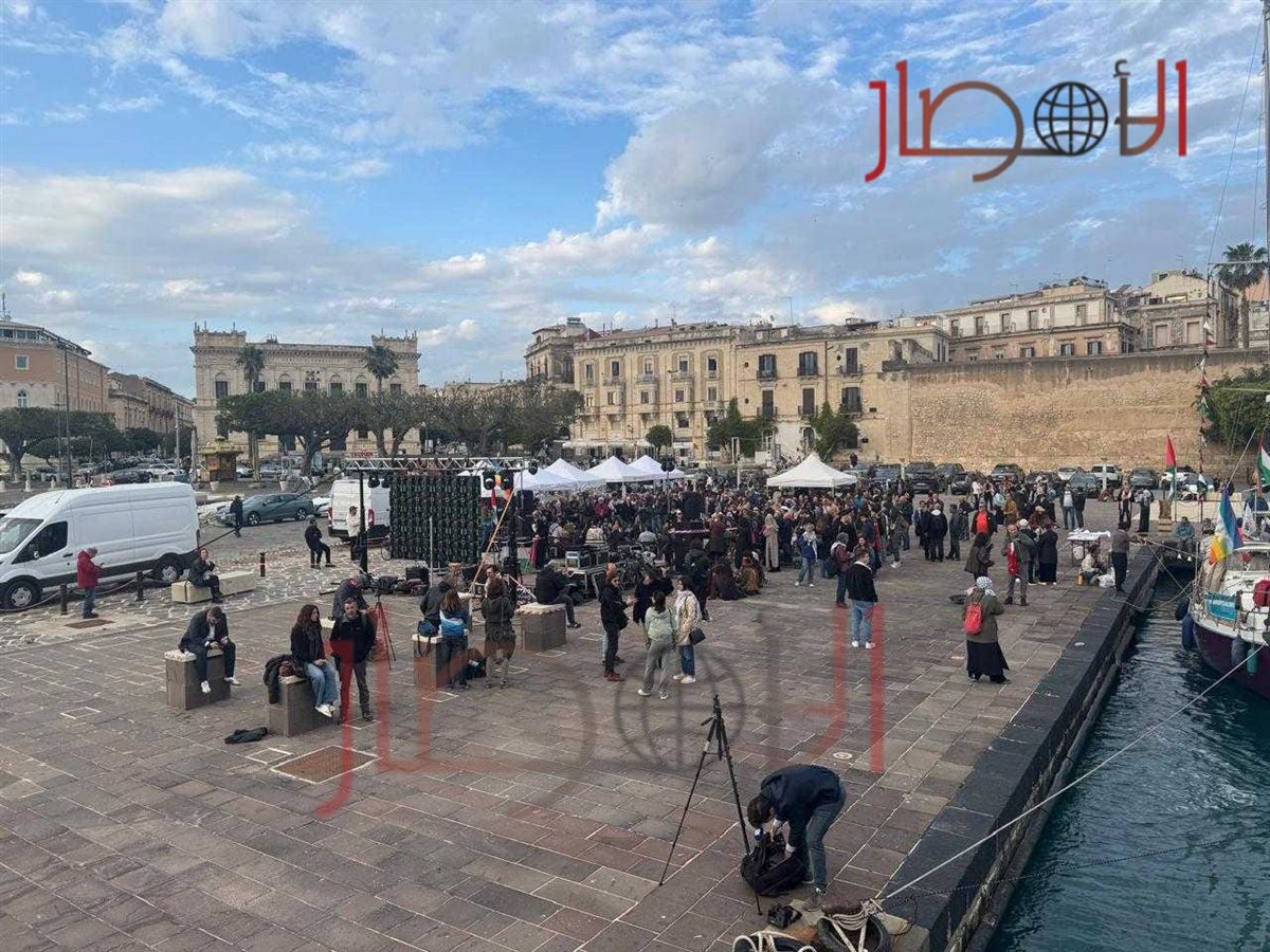 عقد في مدينة "سيراكيوز" الإيطالية مؤتمر صحفي لعدد من المسؤولين عن تحالف أسطول الصمود العالمي لكسر الحصار على غزة.