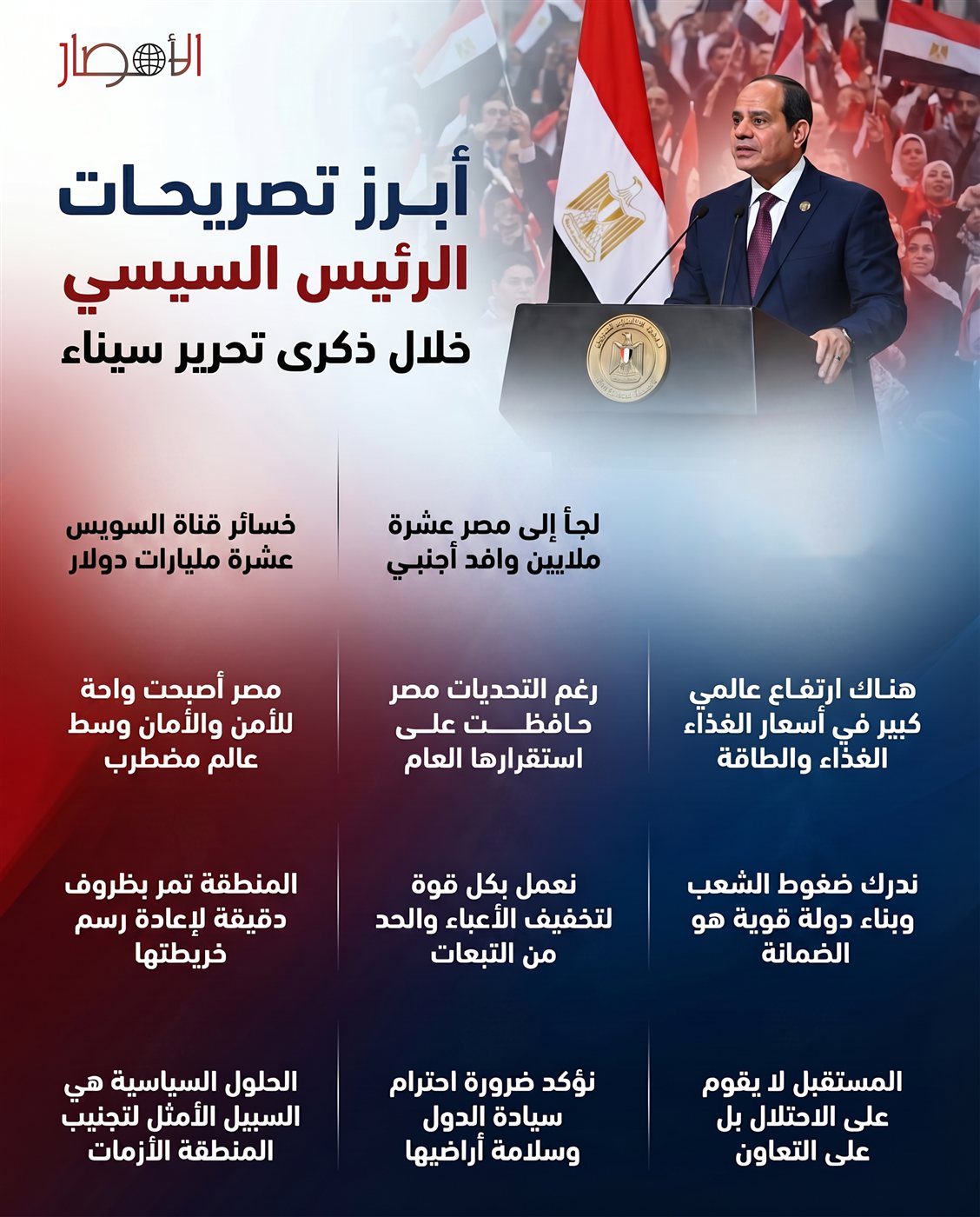 بالإنفوجراف| أبرز تصريحات الرئيس السيسي خلال ذكرى تحرير سيناء