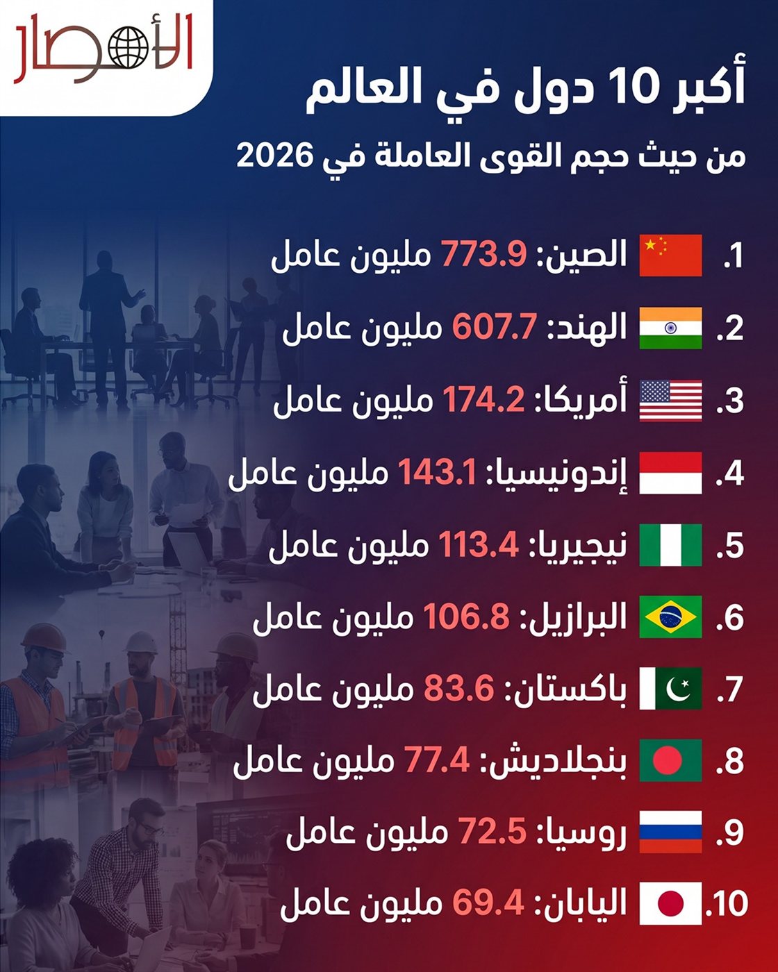 انفوجراف.. أكبر 10 دول في العالم من حيث حجم القوى العاملة في 2026