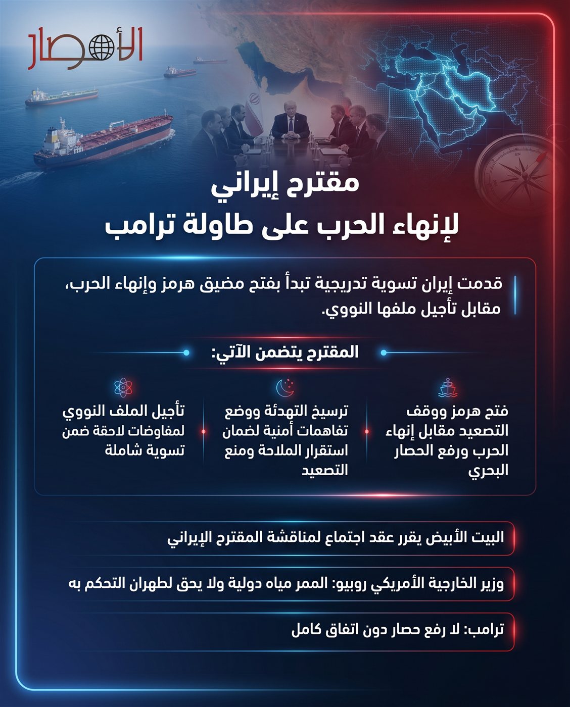 انفوجراف.. مقترح إيراني لإنهاء الحرب على طاولة ترامب