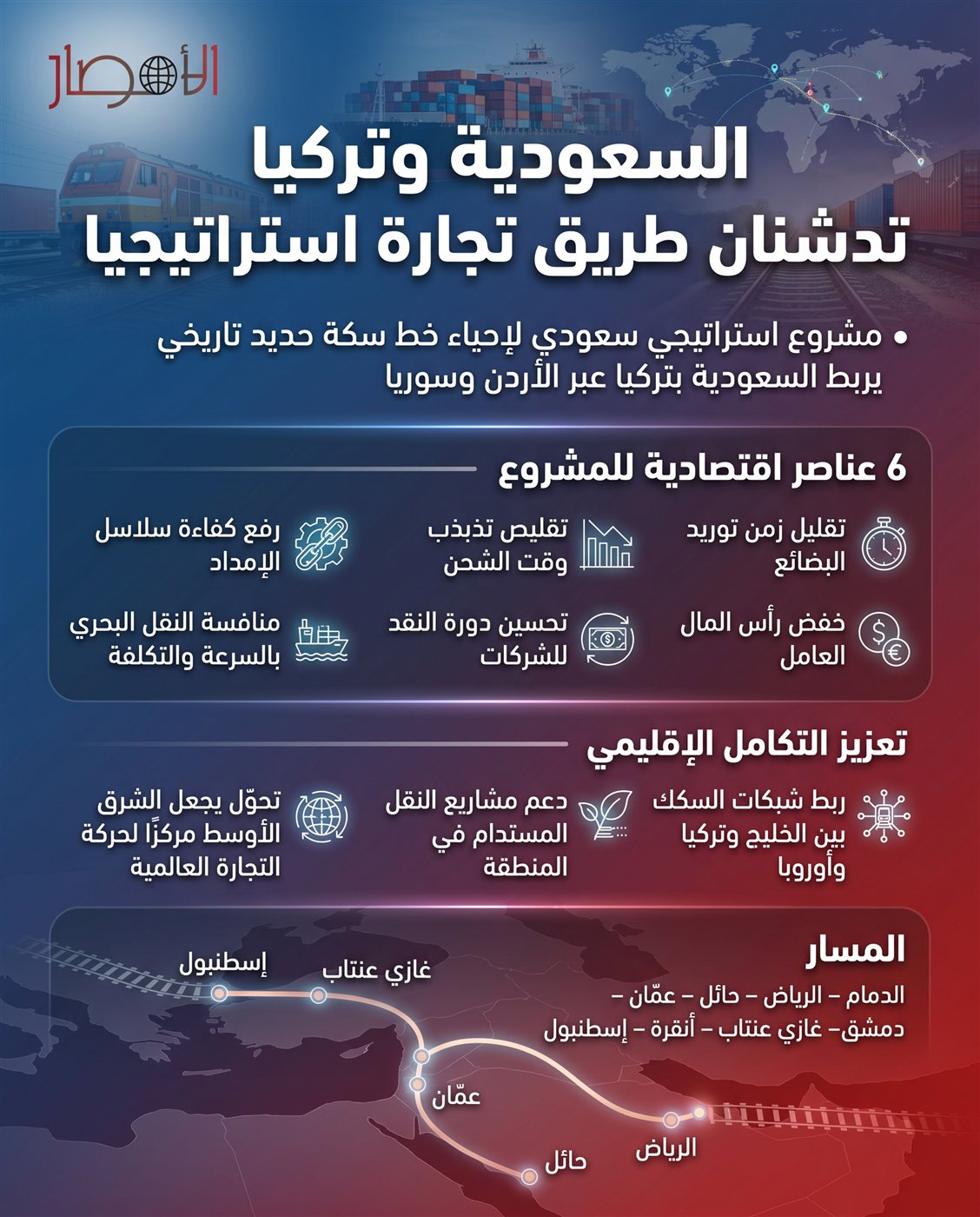 بالإنفوجرافيك| السعودية وتركيا تدشنان طريق تجارة استراتيجيا