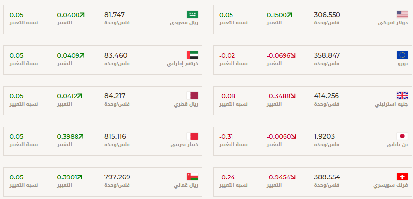 وفيما يلي جدول يعرض أسعار تداول عملات عربية وأجنبية أمام الدينار، وفق النشرة اليومية لبنك الكويت المركزي: