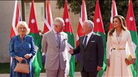 وكان في استقباله في قصر الحسينية، ملك الأردن الملك عبد الله الثاني، حيث عُزف النشيد الوطني الفلسطيني، والسلام الملكي الأردني، ثم استعرض حرس الشرف.