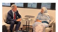 عقدت معالي مفوضة الأمن الغذائي، السيدة فاطمة بنت خطري، مساء أمس الثلاثاء في العاصمة الإيطالية روما، جلسة مباحثات مع المدير التنفيذي لبرنامج الغذاء العالمي السيد دافيد بسيلي.
