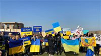 تظاهر أبناء الجالية الأوكرانية في العراق، أمام مقر الأمم المتحدة في أربيل احتجاجًا على الغزو الروسي لبلادهم.