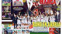 تصدر تتويج فريق ريال مدريد بلقب كأس السوبر الإسباني للمرة الثالثة عشرة في تاريخه، عناوين الصحف الإسبانية الصادرة صباح اليوم الإثنين، وذلك بعدما ألحق الفريق الملكى هزيمة مذلة بغريمه التقليدى برشلونة بنتيجة 4-1، في المباراة التي أقيمت على ملعب الأول بارك ، معقل نادي النصر السعودي، في نهائي كأس السوبر الإسباني.