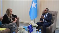 وتم خلال اللقاء مناقشة تعزيز التعاون بين الحكومة الصومالية والاتحاد الأفريقي خاصة في مجالات الأمن والسياسة ومحاربة حركة الشباب.