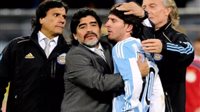 كرم المنتخب الأرجنتيني بقيادة، اللاعب المخضرم، ليونيل ميسي، الأسطورة الأرجينتينة، دييجو ارماندو مارادونا، قبيل مباراة الأرجنتين وتشيلي ف